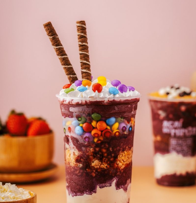 Açaí, Mousse de Maracujá, Leite Ninho em pó, Leite Condensado