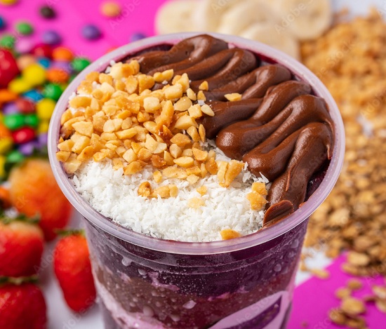 Açaí, Leite ninho em pó,Leite Condensado, Raspa de chocolate